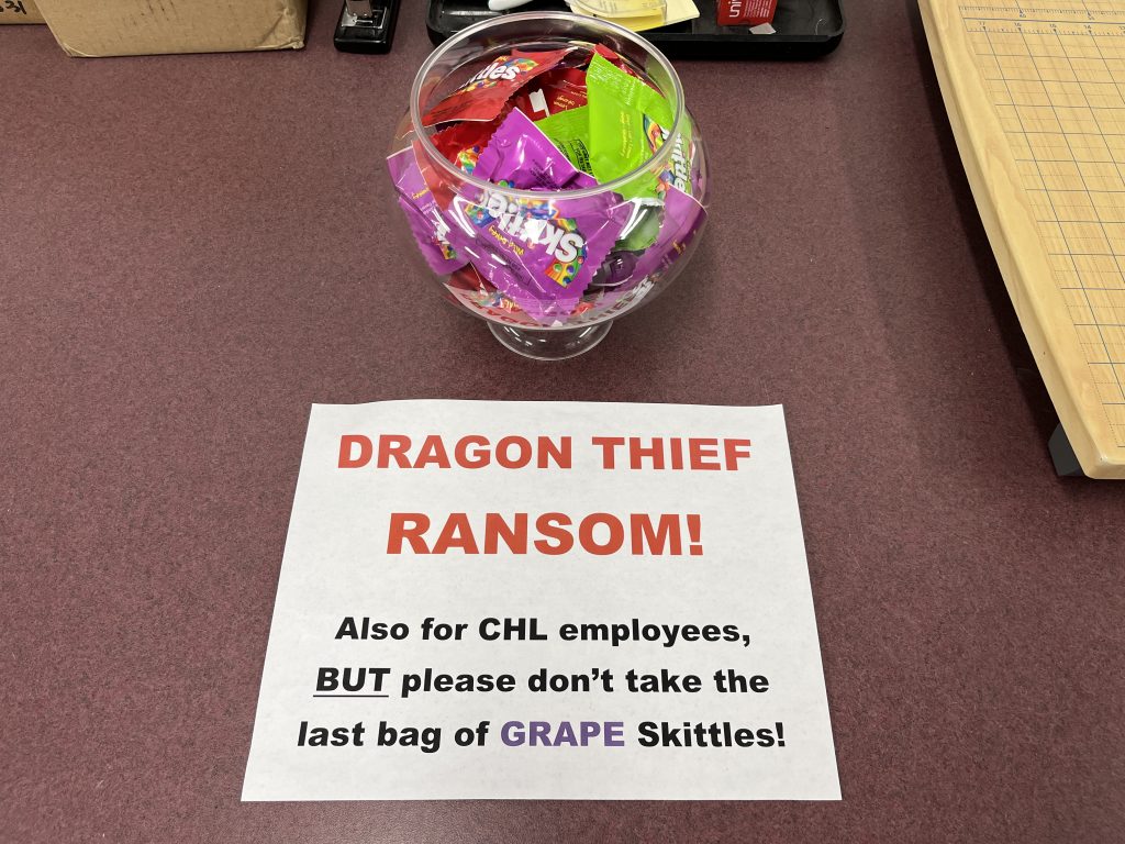When I came back to work the following week, I immediately found the dragon in the cabinet.