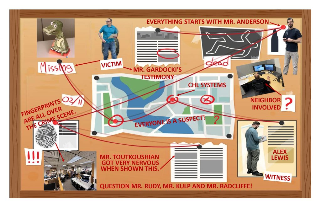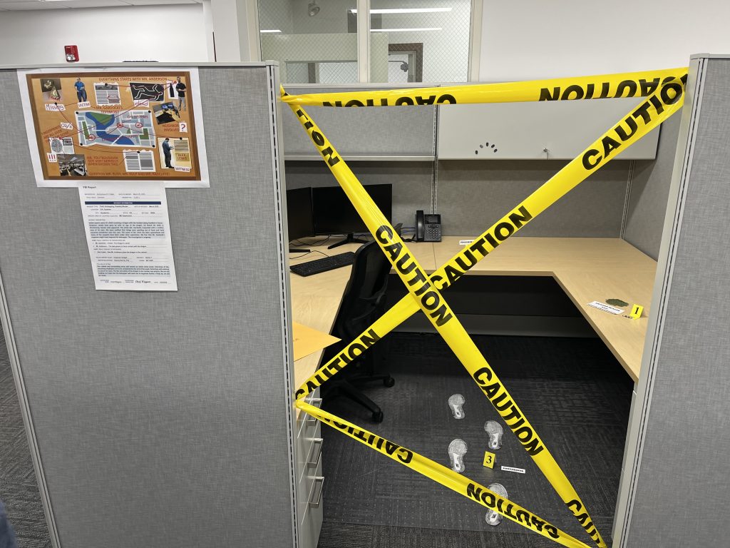 The biggest part of my plan was the crime board, the FBI report and the actual crime scene. This took many evening hours to create.