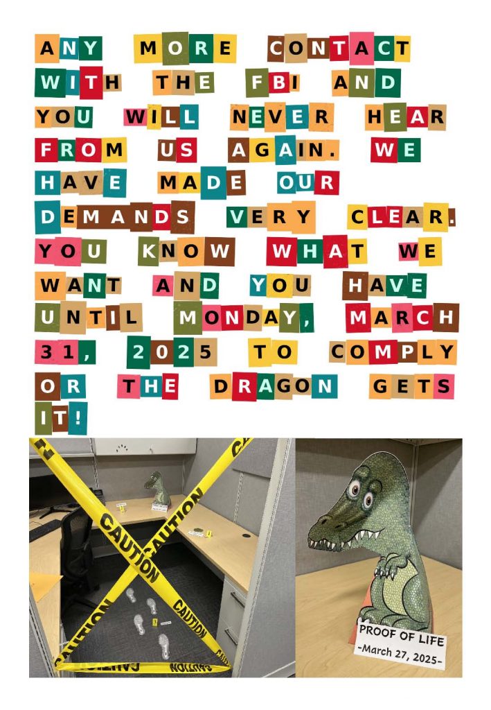 I am not sure who made the ransom note OR the footprints that appeared on 03/21/2025, but I was excited to see them because it took suspicion off of me.